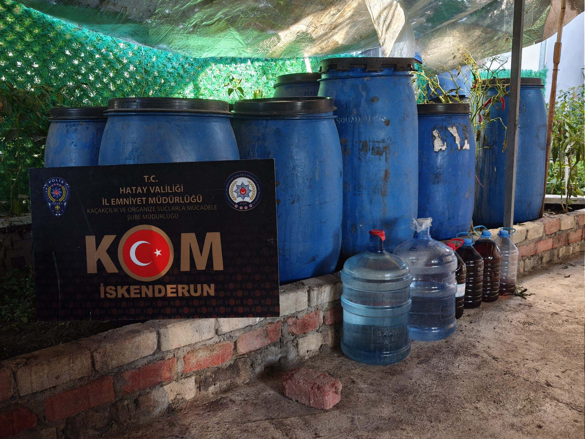 Hatay’ın Arsuz ilçesinde 1250 litre sahte içki ele geçirilen operasyonda 1 şüpheli gözaltına alındı.
