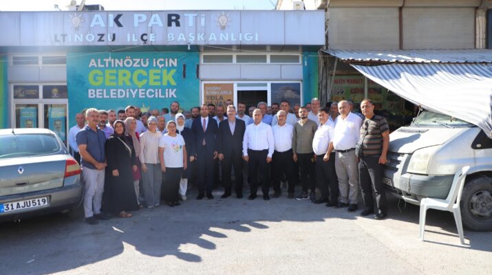Eminmollaoğlu’nun ilk durağı, AK Parti Altınözü İlçe Başkanlığı oldu. Belediye Başkanı Rıfat Sarı, İlçe Başkanı Hakan Dönmez, üç kademe yönetim kurulu üyeleri ve belediye meclis üyelerinin katıldığı toplantıda, ilçenin geleceğine yönelik projeler ele alındı. Samimi bir atmosferde geçen toplantıda birlik, beraberlik ve ortak çalışma vurgusu yapıldı. Eminmullaoğlu daha sonra Altınözü Belediye Başkanı Rıfat Sarı’yı makamında ziyaret ederek ilçede yürütülen hizmetlere ilişkin görüş alışverişinde bulundu.