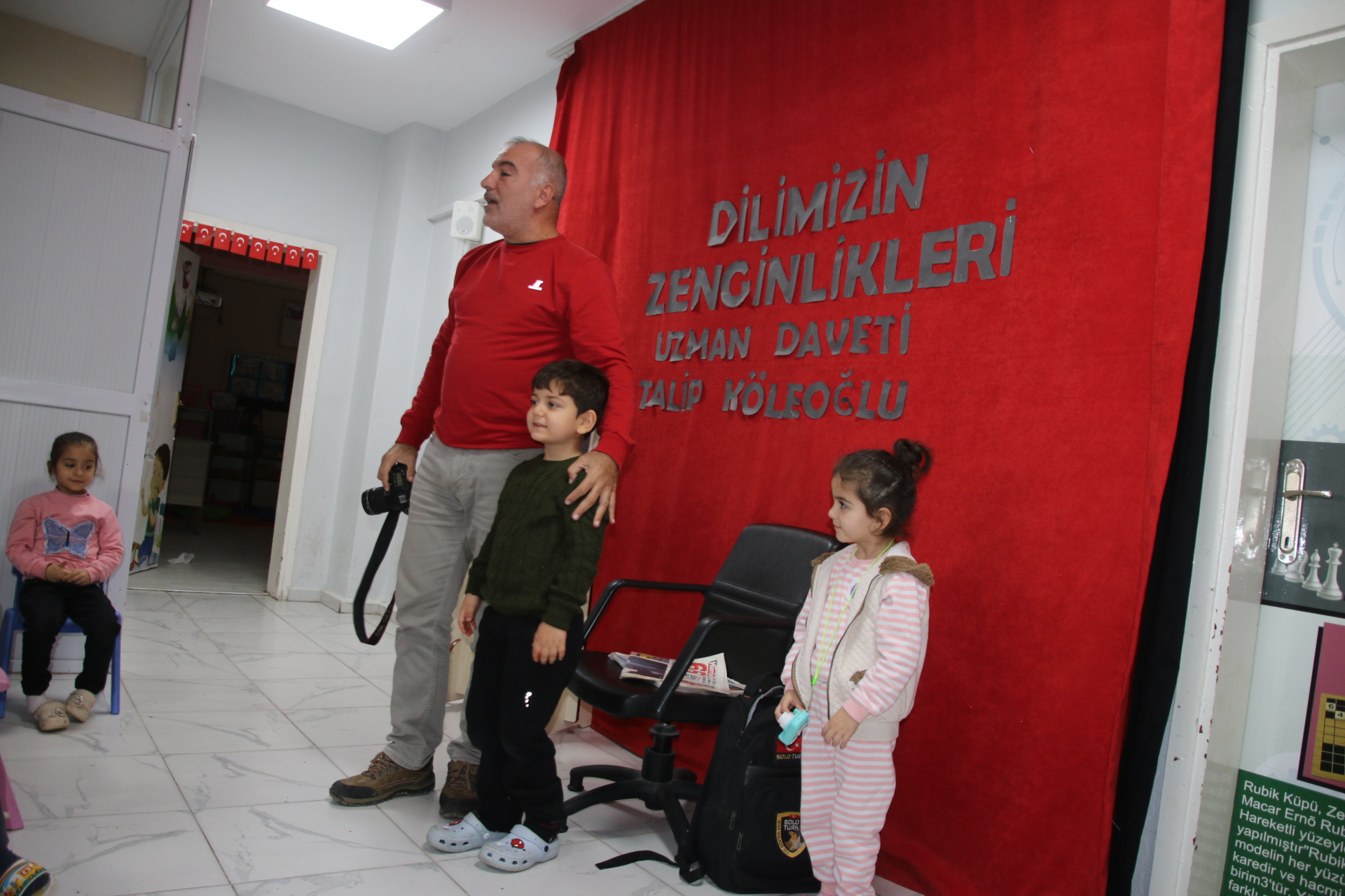 Milli Eğitim Bakanlığı’nın Dilimizin Zenginlikleri Projesi kapsamında Altınkaya Anaokulu, öğrencilerin kelime dağarcığını geliştirmeye ve dili kültürel yönleriyle tanıtmaya yönelik etkinliklerine bir yenisini ekledi. Okul, bu kez Türkiye Foto Muhabirleri Derneği Hatay Temsilcisi ve Hatay Söz Gazetesi Yazı İşleri Müdürü Talip Köleoğlu’nu ağırladı.
