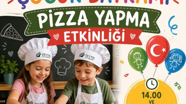 Hatay’ın Altınözü ilçesinde faaliyet gösteren Zeytin Kafe Restoran, 23 Nisan Ulusal Egemenlik ve Çocuk Bayramı kapsamında çocuklara yönelik özel bir etkinlik düzenliyor. “Pizza yapma etkinliği” adıyla gerçekleştirilecek organizasyonda minikler hem eğlenecek hem de kendi pizzalarını hazırlama fırsatı bulacak.