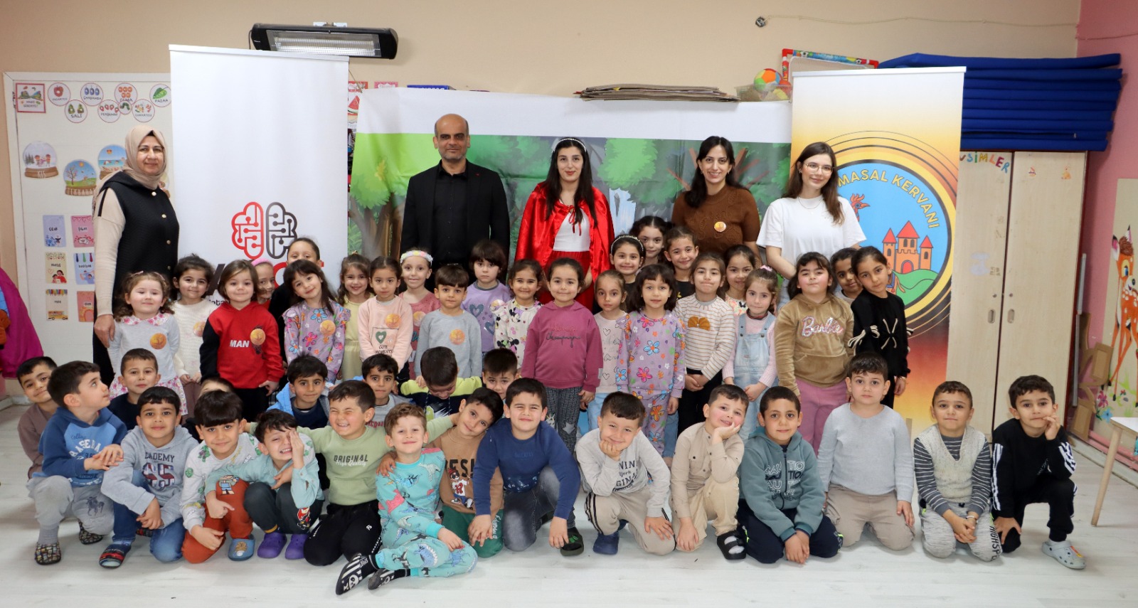 Masallar eşliğinde kimi zaman kahkahalar yükseldi, kimi zaman merak dolu bakışlar sahneye kilitlendi. Minikler, masalların gizli kahramanlarıyla tanışırken; dostluk, yardımlaşma, iyilik ve dürüstlük gibi değerleri de eğlenerek öğrendi.