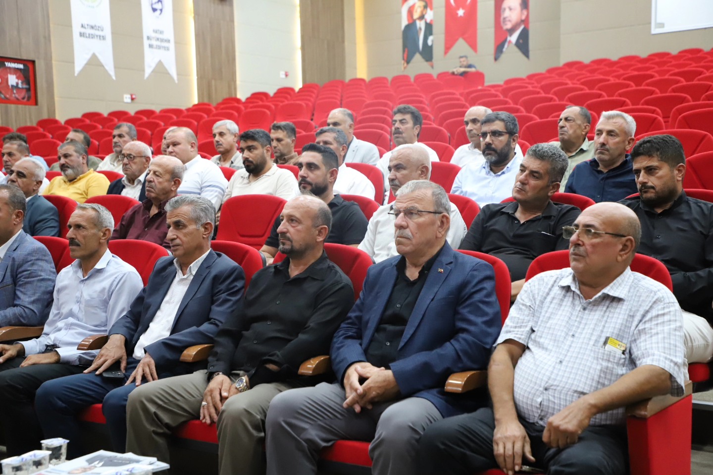 Altınözü Belediye Başkanı Rıfat Sarı, Hatay Büyükşehir Belediyesi Muhtarlar Daire Başkanı İlhami Sönmez’in katılımıyla gerçekleştirilen toplantıda 49 mahalle muhtarıyla bir araya geldi. Toplantıya, AK Parti Altınözü İlçe Başkanı Hakan Dönmez, MHP Altınözü İlçe Başkanı Adem Türk ve Altınözü Muhtarlar Derneği Başkanı Sabahattin Bayır da katıldı. Toplantıda, Hatay Büyükşehir Belediyesi ve Altınözü Belediyesi tarafından ilçede sürdürülen mevcut hizmetler ile planlanan projeler ele alındı. Mahalle muhtarlarının talep ve önerilerinin dinlendiği toplantıda, çözüm önerileri ve koordinasyon çalışmaları da gündeme geldi.