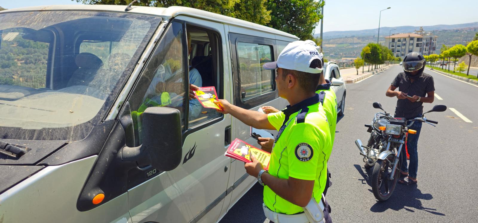 Ekipler, kazaların önlenmesi, sürücülerin trafik kurallarına uygun davranmasına yönelik bilgilendirme yaparak broşür dağıttı. Haber: Mahmut Tuncay