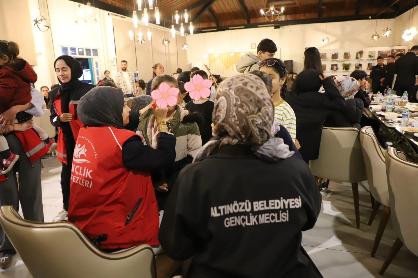 Hatay Valiliği himayelerinde yürütülen “Yüreğimizdeki Işık Projesi” kapsamında Altınözü’nde öksüz ve yetim çocuklar için iftar programı düzenlendi. Programa Altınözü Kaymakamı Efecan Şahin ve eşi Hicran Şahin, Altınözü Belediye Başkanı Rıfat Sarı ve eşi Meryem Sarı ile kurum amirleri ve ilgili kurum personelleri katıldı. Programda çocuklarla birlikte iftar yapılarak Ramazan ayının manevi atmosferi paylaşıldı. Protokol üyeleri program boyunca çocuklarla yakından ilgilenerek onların sevinç ve heyecanına ortak oldu. İftarın ardından çocuklara yönelik müzik dinletisi ve yüz boyama etkinliği gerçekleştirildi. Renkli görüntülere sahne olan etkinliklerde çocuklar keyifli ve neşeli vakit geçirdi.