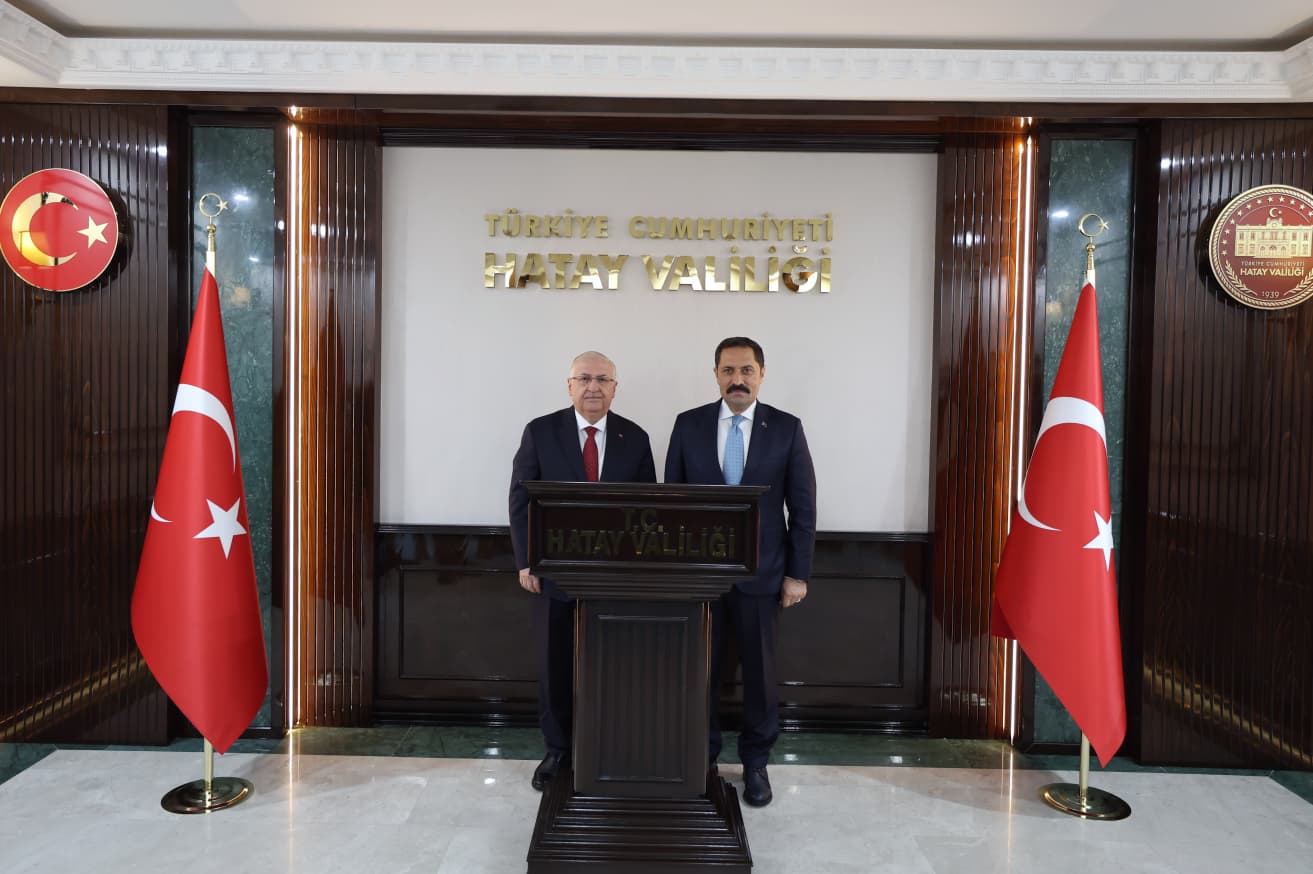 Hatay Valisi Mustafa Masatlı ve diğer yetkililer tarafından karşılanan Bakan Yaşar Güler, ilk olarak Hatay Valiliğini ziyaret ederek kentteki çalışmalara ilişkin bilgi aldı.