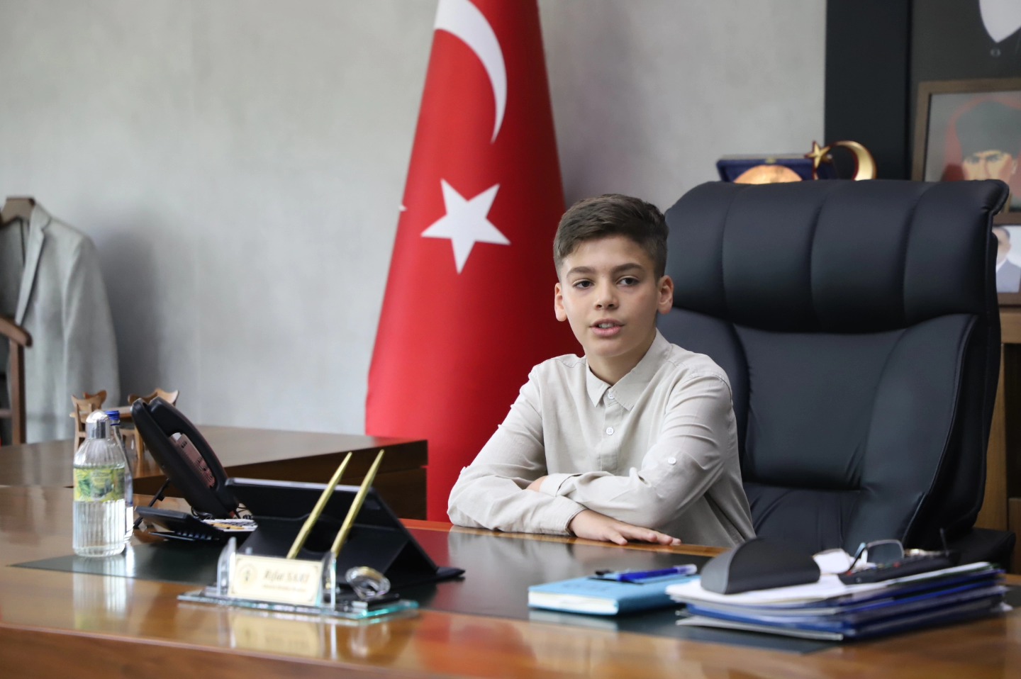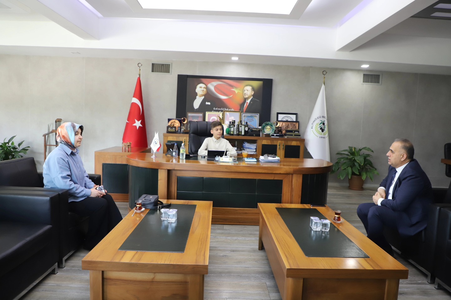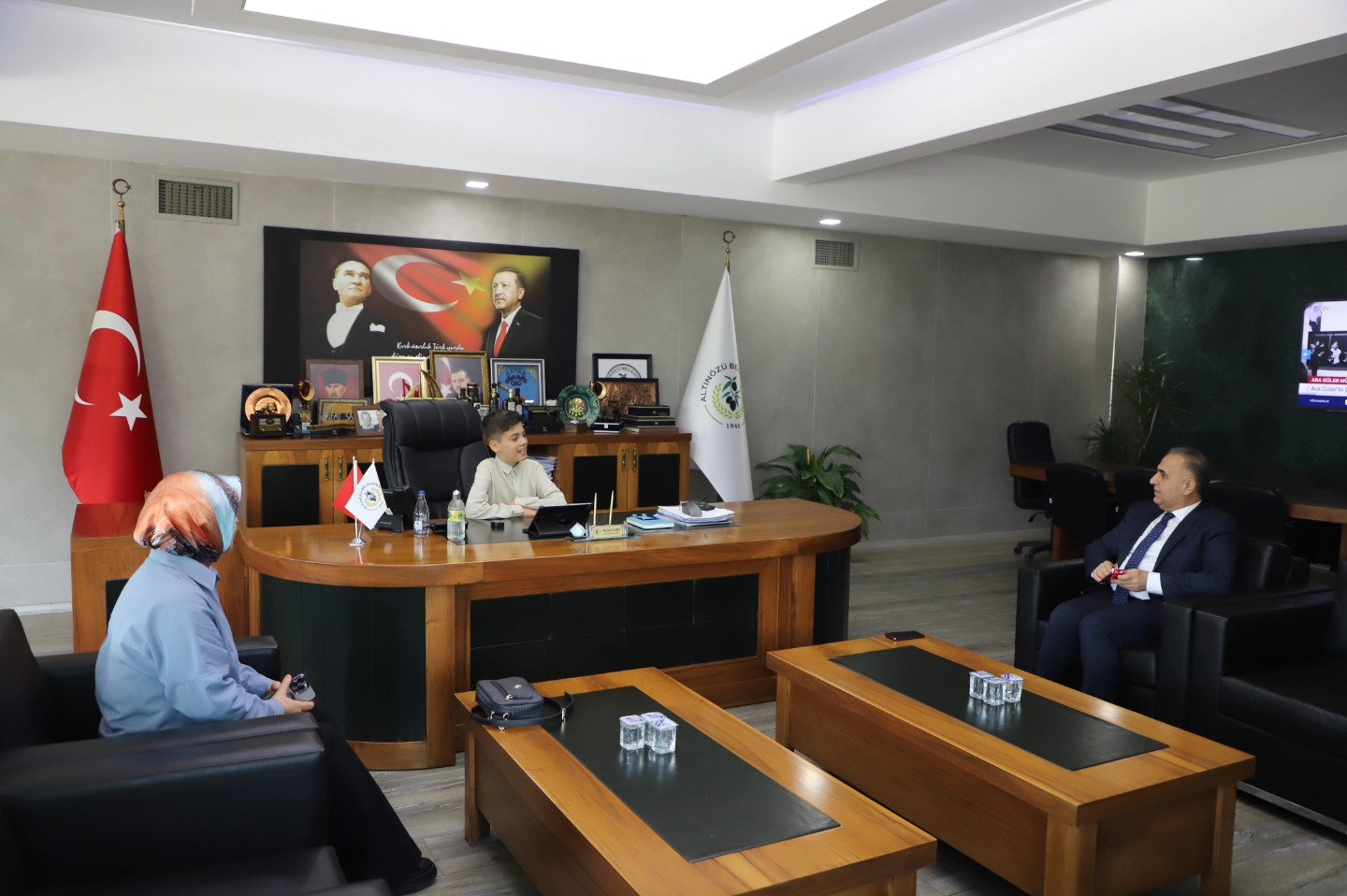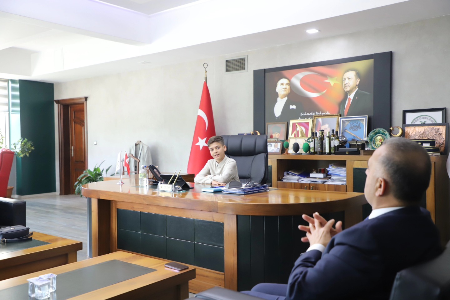 Altınözü Belediye Başkanı Rıfat Sarı, 23 Nisan Ulusal Egemenlik ve Çocuk Bayramı kapsamında anlamlı bir etkinliğe imza attı. Atatürk İlkokulu öğrencisi Haris Sağlamoğlu, temsili olarak başkanlık koltuğuna oturdu. Minik Haris’in heyecanı ve mutluluğu yüzlere yansırken, programda çocukların geleceğe dair umutları da ön plana çıktı. Başkan Sarı, çocukların ülkenin yarınları olduğunu vurgulayarak onların hayallerinin desteklenmesi gerektiğini ifade etti. Ziyaret kapsamında sınıf öğretmeni Yasemin Güner de yer aldı. Başkan Sarı, nazik ziyaretlerinden dolayı öğretmen Güner ve öğrenci Haris Sağlamoğlu’na teşekkür etti. Altınözü Belediyesi’nin, çocukların daha umut dolu bir geleceğe hazırlanması için çalışmalarını sürdüreceği belirtildi. Haber: Hazal Bahçeci