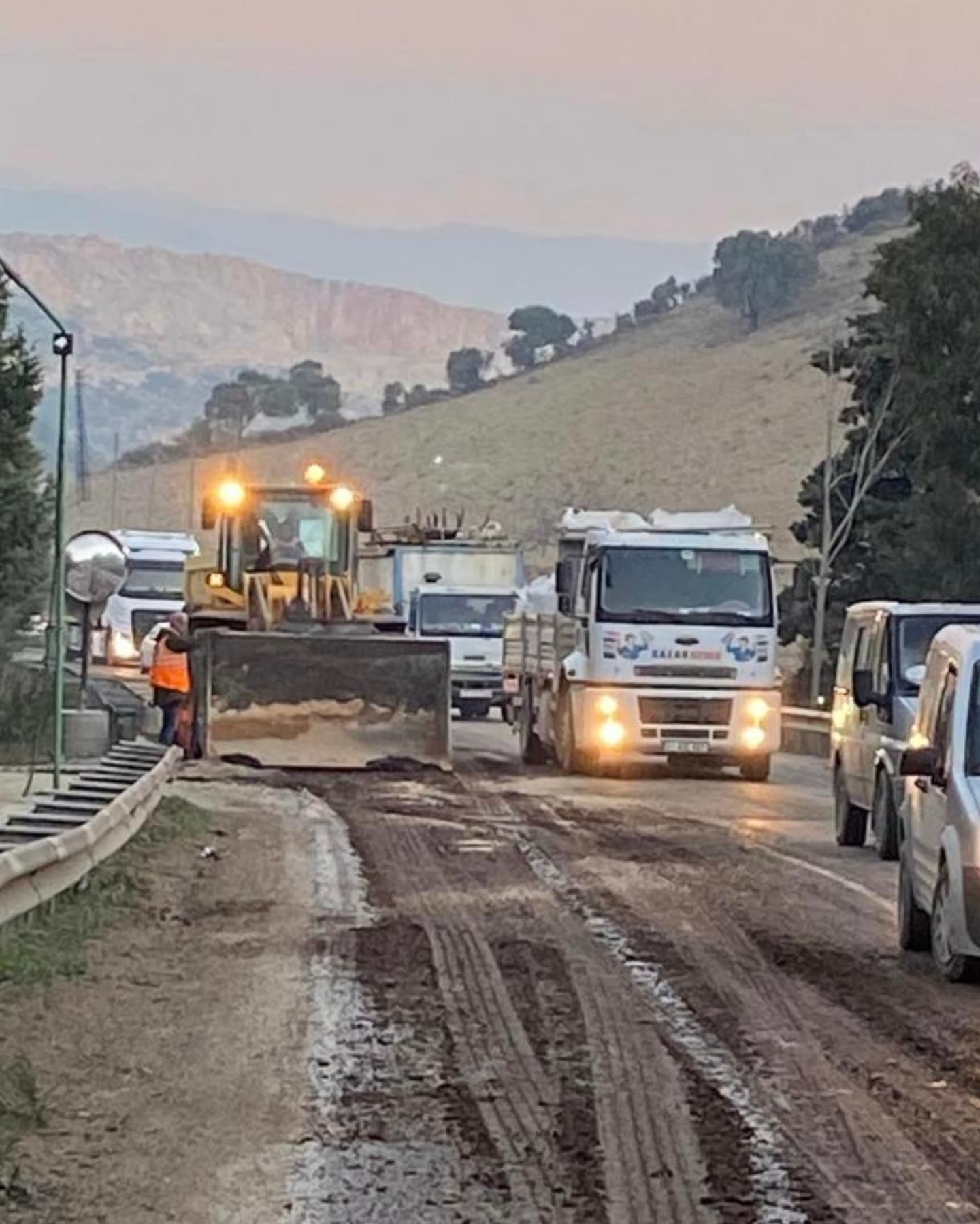 Zeytin posasının yolun büyük bir kısmını kaplaması sonucu, temizlik ekipleri hızla bölgeye sevk edilerek temizlik çalışmalarına başladı. Ekipler, yolların temizlenmesi ve trafik akışının normale dönmesi için yoğun bir çaba sarf ediyor. Haber: Sabahattin Atasoy