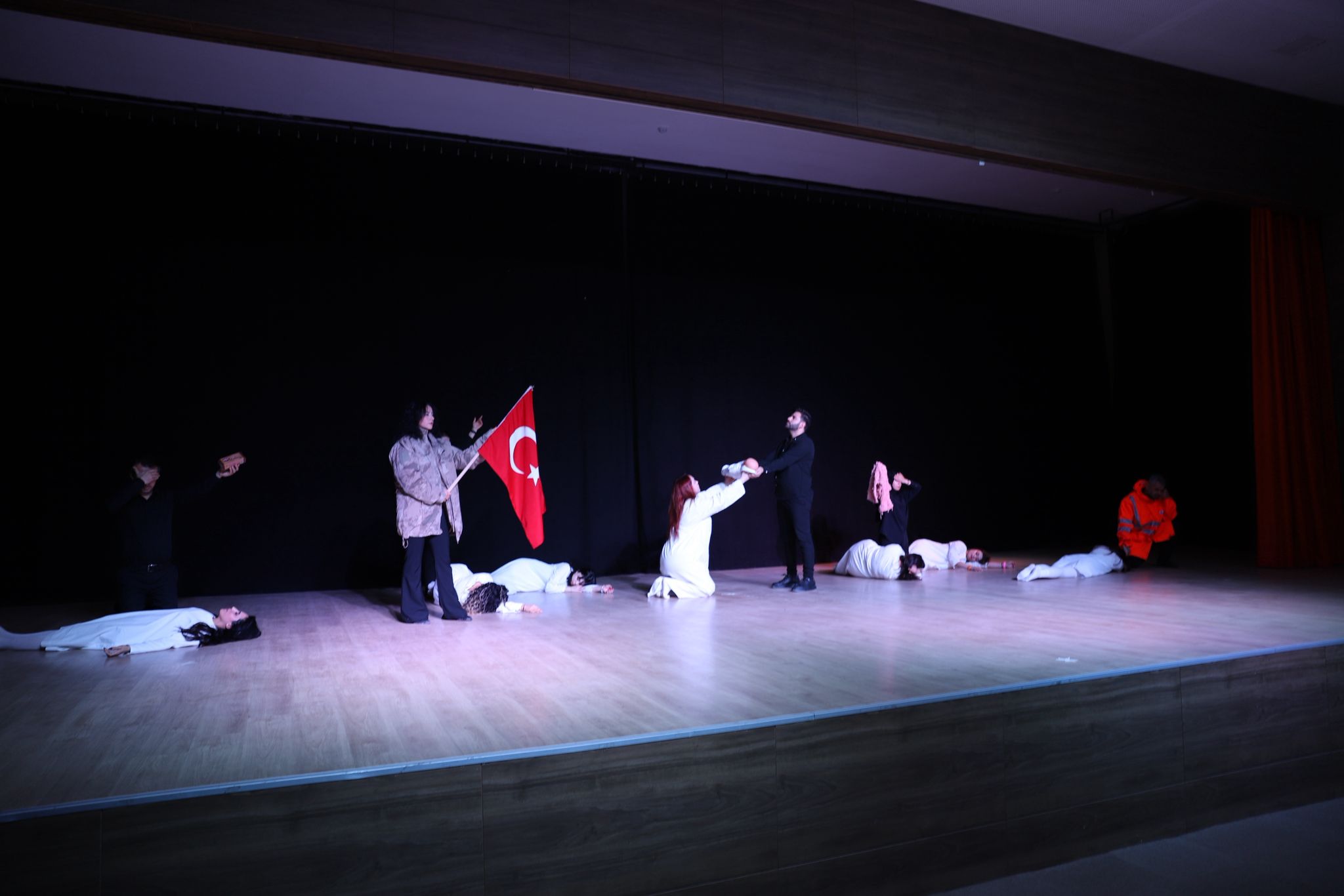 Anma programının son bölümünde, ilçede görev yapan öğretmenlerden oluşan Külden Köze isimli grup tarafından tiyatral bir gösteri sahnelendi. Gösteride deprem anını yansıtan ses efektleri ile çeşitli canlandırmalara yer verildi.