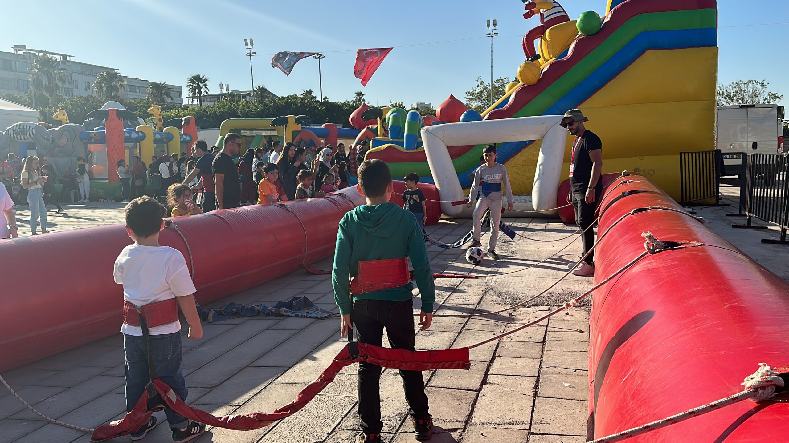 İskenderun ilçesindeki Atatürk Anıtı’nda kurulan “Cumhuriyet Panayırı”nda depremzede çocuklar doyasıya eğlendi.
