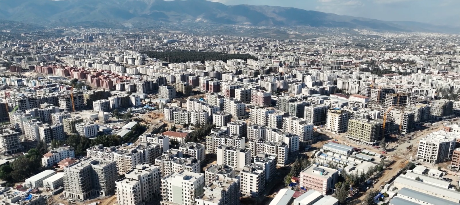 Kahramanmaraş merkezli 6 Şubat 2023’teki depremlerden etkilenen Hatay, alt ve üstyapı yatırımlarıyla yeniden inşa ediliyor. Kentte, barınmanın yanı sıra eğitimden sağlığa, ticaretten kültürel varlıkların ihyasına ve sosyal projelerin hayata geçirilmesine kadar çok sayıda çalışma eş zamanlı yürütülüyor. Devlet desteğiyle adeta yeniden inşa edilen kentte, ev ve iş yerlerini kaybeden depremzedeler için 190 bin 464 bağımsız bölümün yapımı planlandı.