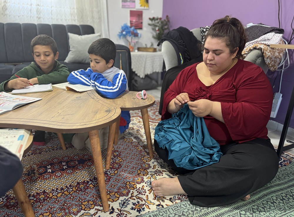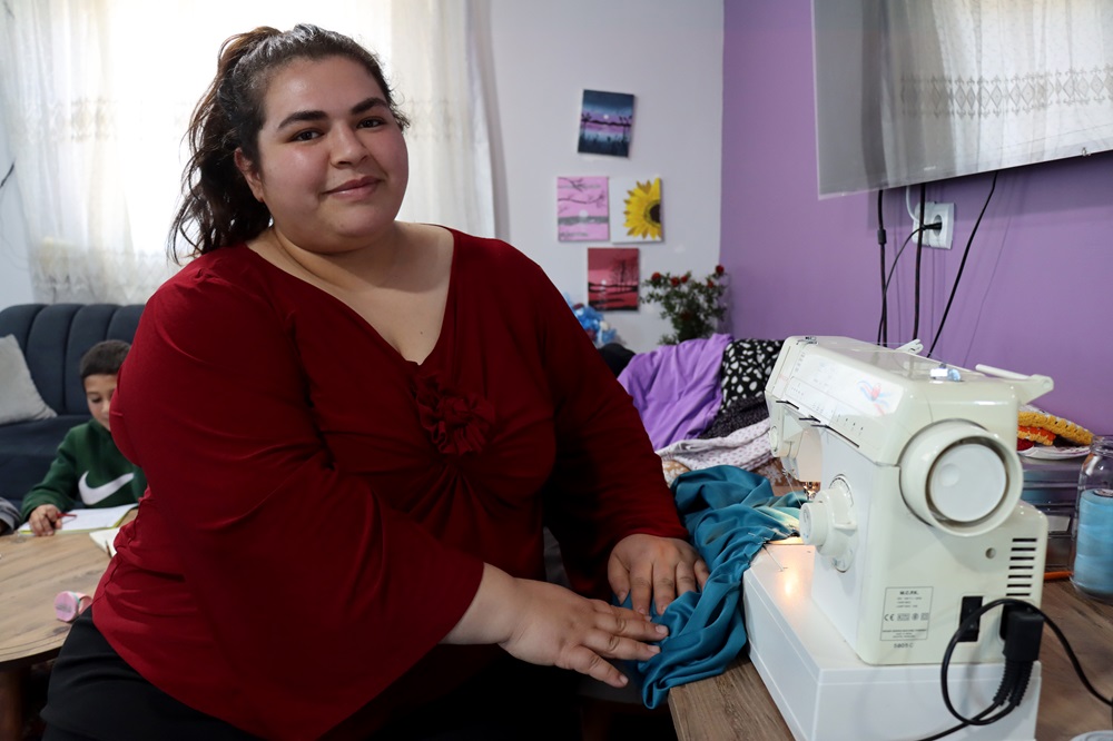 “Artık sıcak bir yuvamız var, evimizde rahat uyuyoruz. Havva Hanım sağ olsun, bir konuda daha bana yardımcı oldu. Ona dikiş yapabildiğimi söyledim, o da ‘Sana dikiş makinesi alalım, bize dikiş yap.’ dedi, ben de kabul ettim. Bildiğim bir işti, sonra kendim kıyafetlerimi diktim, sonra derneğin siparişleri oldu. Kazanıyorum, en azından mutfak alışverişimi çıkartıyorum.”