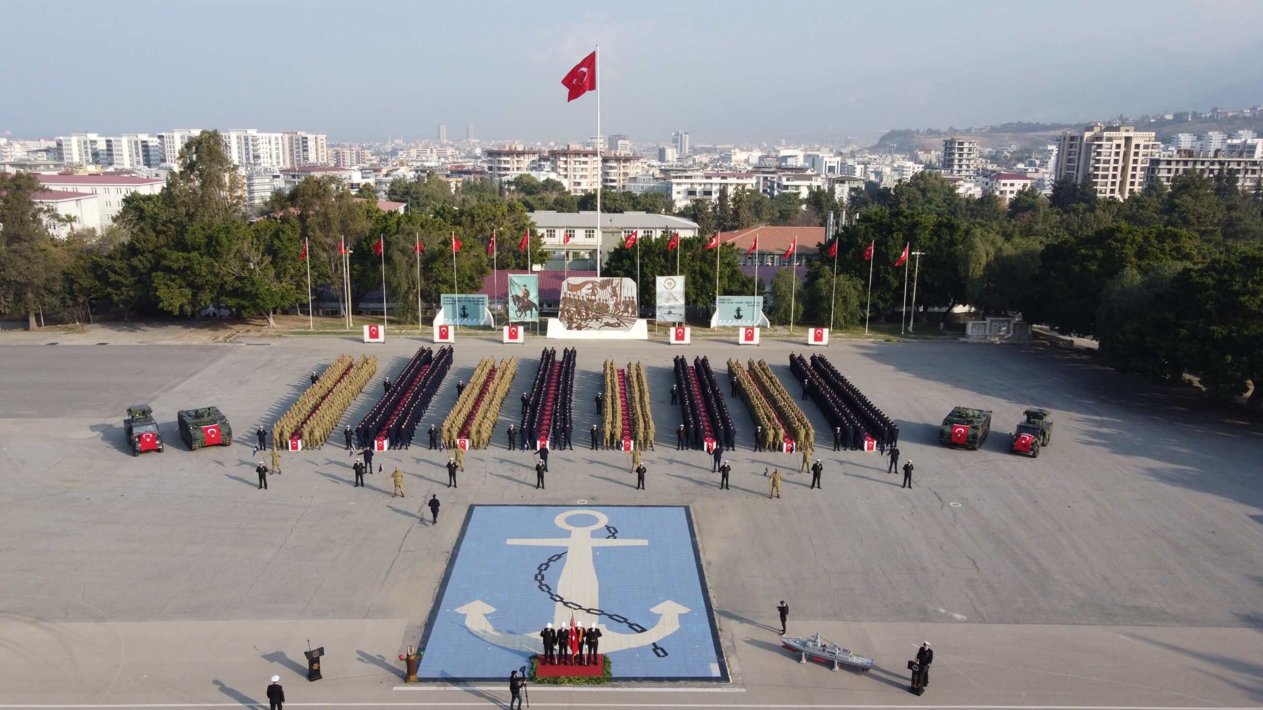 Hatay’daki İskenderun Deniz Er Eğitim Alay Komutanlığı’nda temel eğitimlerini tamamlayan 1279 acemi er yemin etti. Komutanlıkta 2025-4B celbi acemi erler için düzenlenen törende sancak geçişi yapıldı. Akdeniz Bölge Komutanı Tuğamiral Soner Kazankaya’nın askerleri ve ailelerini selamlamasının ardından katılımcılar saygı duruşunda bulundu, İstiklal Marşı’nı okudu.