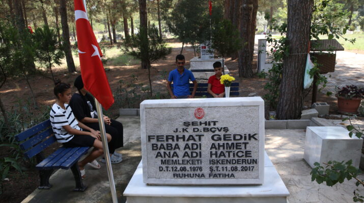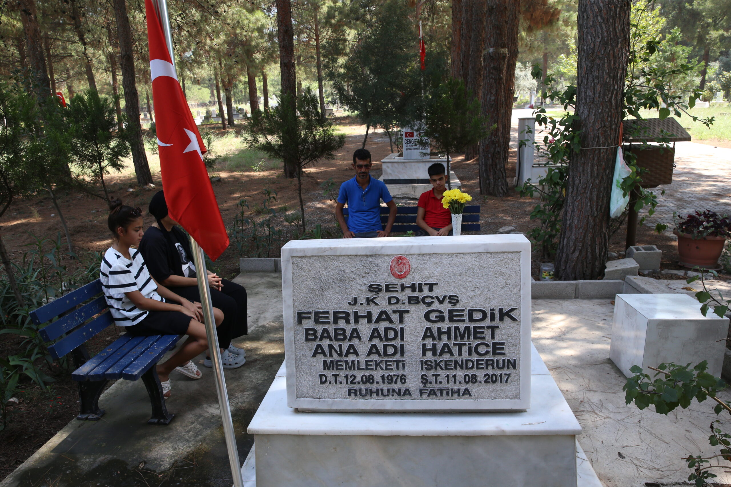 Maçka ilçesi kırsalında teröristlerden korumaya çalıştığı Eren Bülbül ile şehit düşen Gedik’in Afyonkarahisar’da yaşayan kardeşi Arif Gedik, eşi ve çocuklarıyla ağabeyinin İskenderun ilçesindeki mezarını şehadetinin 8. yılında ziyaret etti.