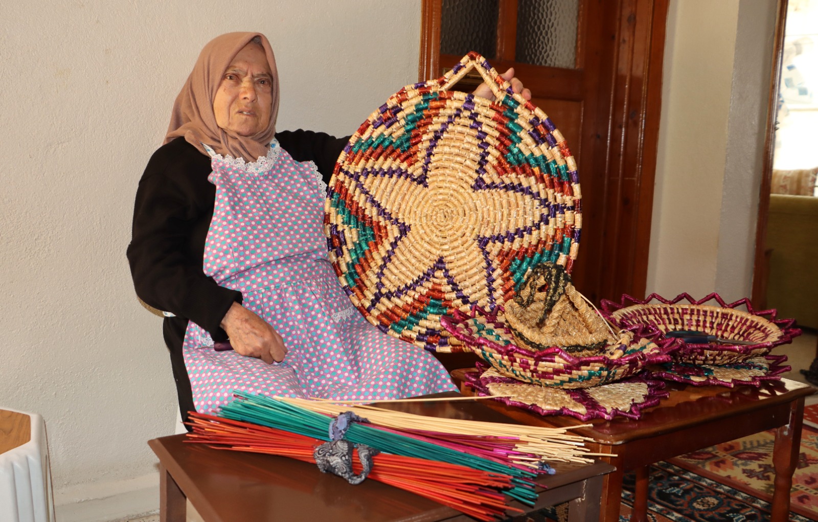 Hatay’ın Altınözü ilçesine bağlı Altınkaya Mahallesi’nde yaşayan Fatma Özalp, çocuk yaşta öğrendiği buğday sapı örme sanatını tam 66 yıldır büyük bir emek ve sabırla sürdürüyor. Geleneksel el sanatını evinde yaşatan Özalp, ortaya koyduğu el emeği ürünlerle kültürel mirası geleceğe taşıyor.