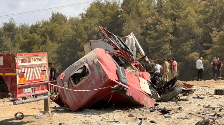 Hatay’ın merkez Antakya ilçesinde, freni arızalanan vincin park halindeki tır ve hafif ticari araca çarpıp uçuruma yuvarlanması sonucu 1 kişi hayatını kaybetti, 1 kişi yaralandı. M.E. (21) idaresindeki 15 AG 815 plakalı vinç, freninin arızalanması nedeniyle Karlısu Mahallesi’ndeki bir şantiye alanında park halinde bulunan 31 AIT 373 plakalı tır ve 31 ACU 383 plakalı hafif ticari araca çarpıp uçuruma yuvarlandı. İhbar üzerine kaza yerine 112 Acil Sağlık, itfaiye ve jandarma ekipleri sevk edildi.