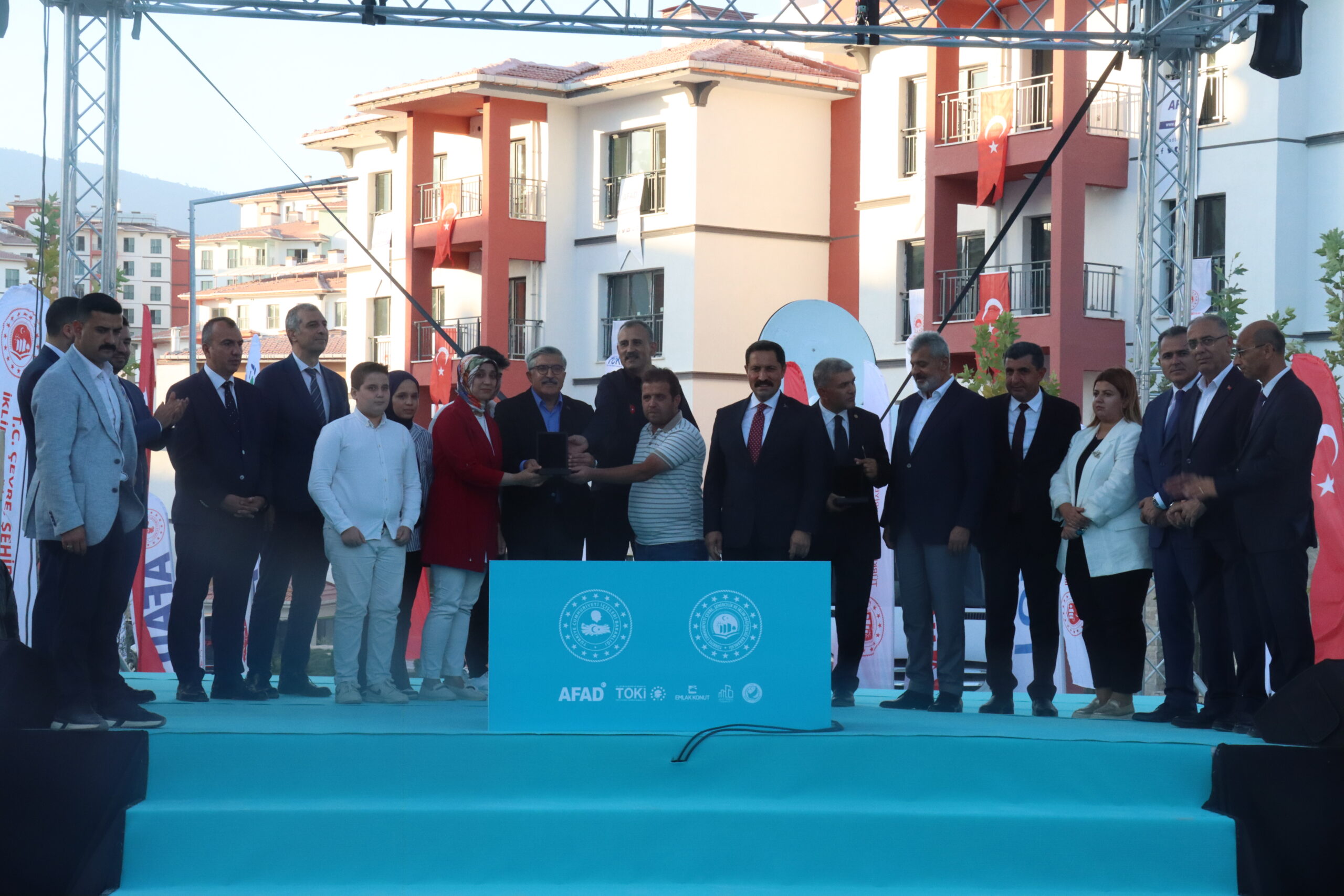 Kentteki törenle, 6 Şubat 2023’teki depremlerden etkilenenler için yapılan 16 bin 993 deprem konutu ile 1355 iş yerinin hak sahibi belirlendi.