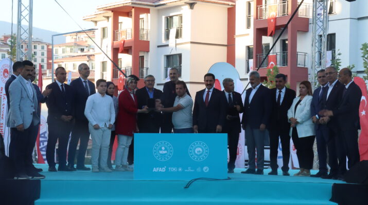 Kentteki törenle, 6 Şubat 2023’teki depremlerden etkilenenler için yapılan 16 bin 993 deprem konutu ile 1355 iş yerinin hak sahibi belirlendi.
