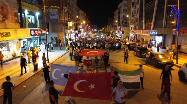 Hatay’ın Dörtyol ilçesinde Filistin’e destek yürüyüşü düzenlendi. Sanayi Mahallesi’ndeki Atatürk Parkı’nda bir araya gelen bazı sivil toplum kuruluşlarının üyeleri ve vatandaşlar, Çaylı Caddesi’nden Saat Meydanı’na kadar sloganlar atarak yürüdü. Grup adına burada açıklama yapan İHH Dörtyol Temsilcisi Mehmet Burgaç, tüm insanlığın umut ve vicdanının Filistin’deki mücadeleye taşındığını belirterek, “Yaptığımız şey sadece bir deniz yolculuğu değil, aynı zamanda etik bir haykırıştır. Bu onurlu yolculuk korunmalıdır.” dedi. Açıklamanın ardından İsrail’in saldırılarında yaşamını yitiren Filistinliler için dua edildi. AA