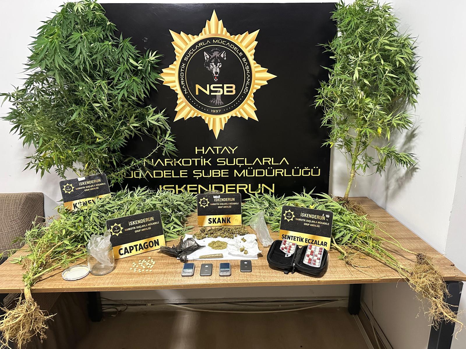 Hatay’da uyuşturucu operasyonlarında gözaltına alınan 24 zanlıdan 19’u tutuklandı. İl Emniyet Müdürlüğü Narkotik Suçlarla Mücadele Şubesi ekipleri, 15 Temmuz-15 Ağustos’ta kent genelindeki bazı adreslere operasyon düzenledi. Adreslerde 1 kilo 366 gram sentetik uyuşturucu, 10 bin 396 uyuşturucu hap, 43 sentetik ecza hapı, 16 kenevir bitkisi, ruhsatsız 3 tabanca ve 7 tüfek ile 3 hassas terazi ele geçirildi. Ekipler, 24 şüpheliyi gözaltına aldı. İşlemlerinin ardından adliyeye sevk edilen zanlılardan 19’u çıkarıldıkları hakimlikçe tutuklandı, 5’i adli kontrol şartıyla serbest bırakıldı. AA