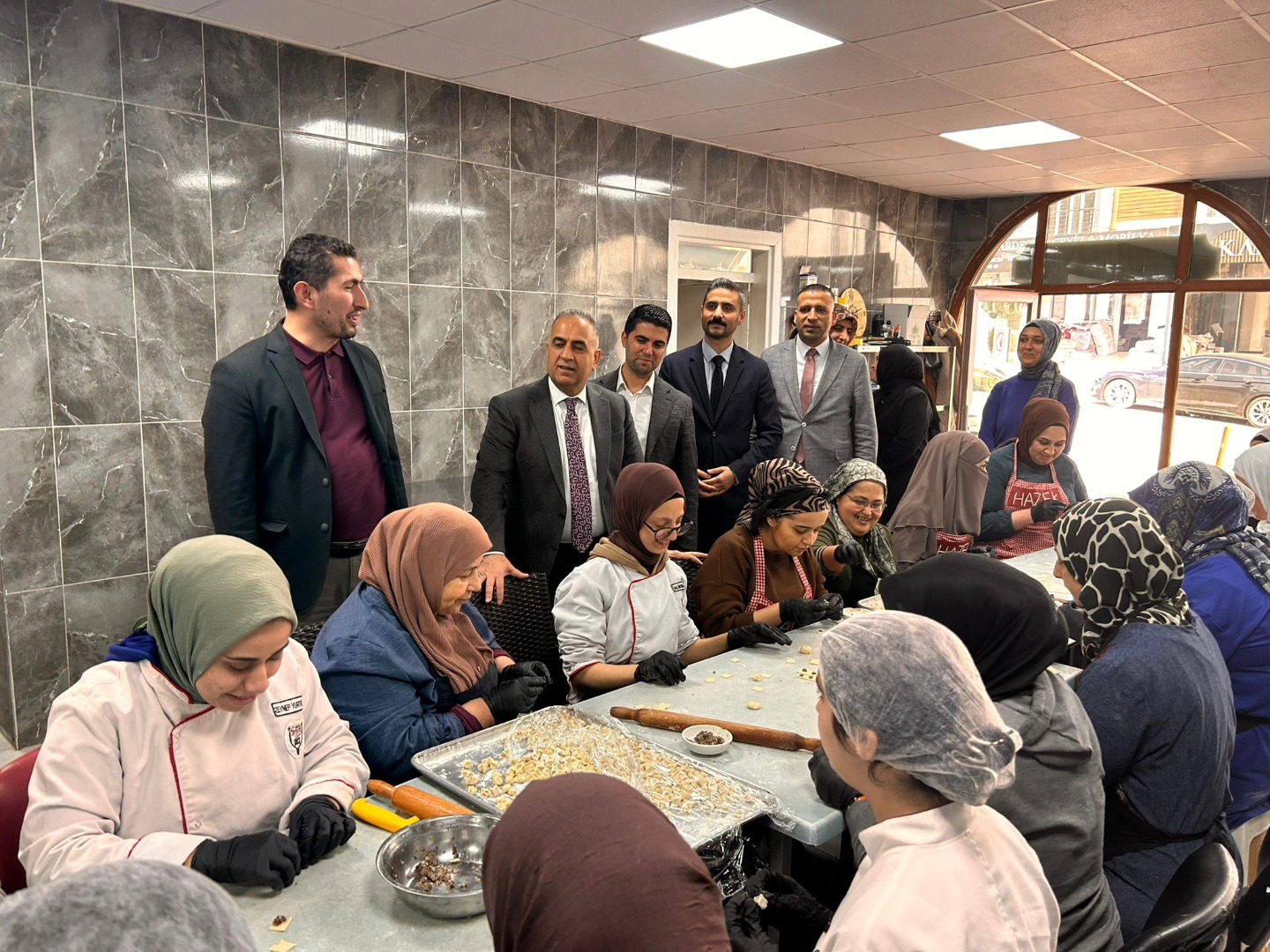 Altınözü Belediye Başkanı Rıfat Sarı, Hatay Büyükşehir Belediyesi Genel Sekreter Yardımcısı Uğur Kandemir, İnsan Kaynakları Daire Başkanı Bahattin Topbaş, Hayat Boyu Öğrenme Şube Müdürü Mehmet Avcı ve AK Parti Altınözü İlçe Başkanı Hakan Dönmez ile birlikte Hatay Altınözü Zeytin Emeği Kadın Kooperatifi’ni (HAZEK) ziyaret etti.