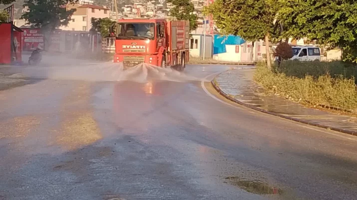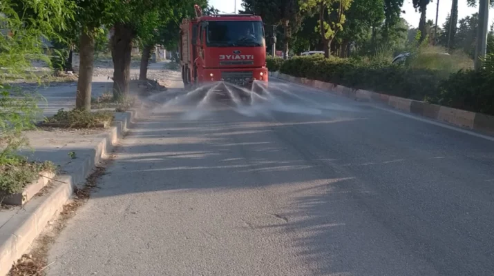 Hatay Büyükşehir Belediyesi, Kurban Bayramı boyunca vatandaşların ibadetlerini ve tatilini sağlıklı bir ortamda gerçekleştirmesi için 15 ilçede temizlik ve yol yıkama çalışmaları yaptı.