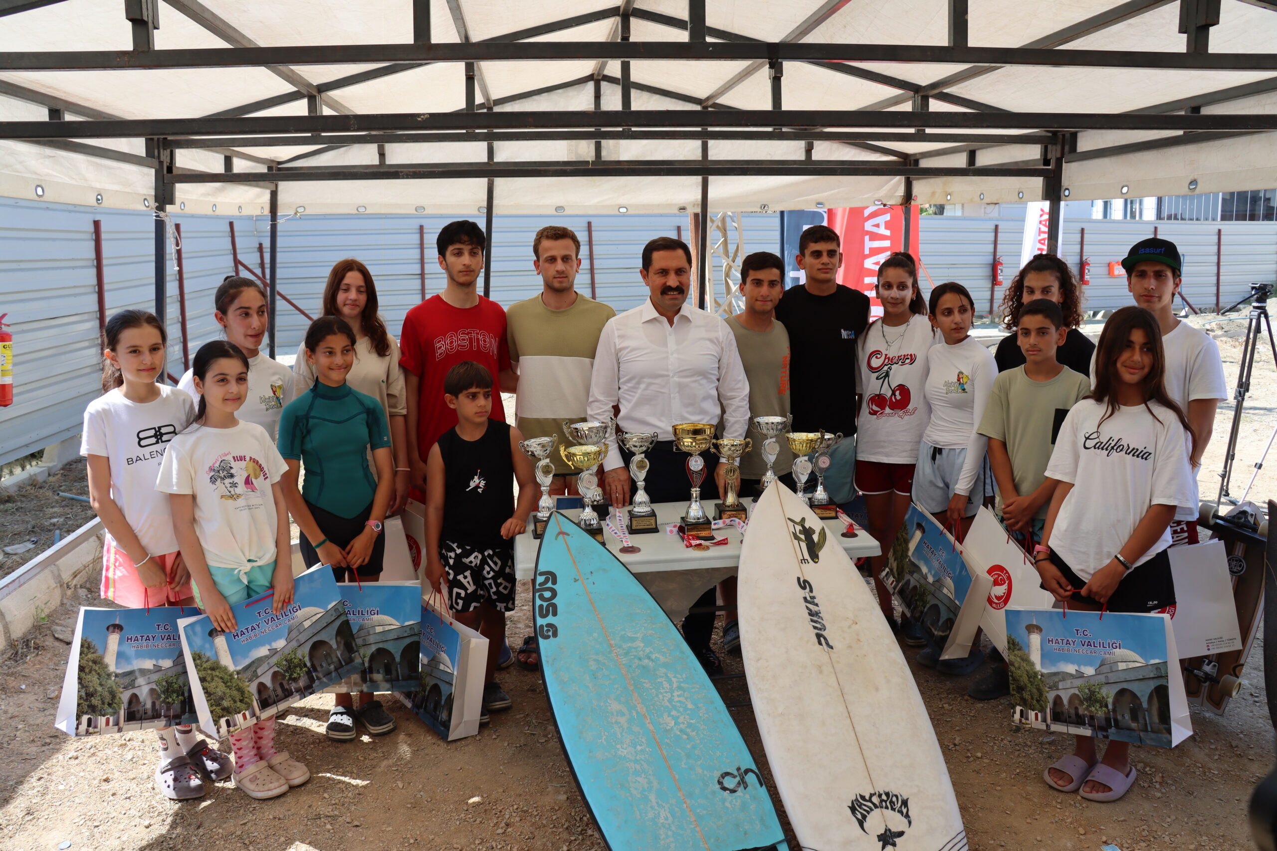 Vali Masatlı, Hatay Sörf Merkezi’nin geçici olarak kurulan alanında geçen yıl 8 ile 16 yaş aralığında 1053 çocuk ve gence ücretsiz dalga sörfü eğitimi verdiklerini söyledi.