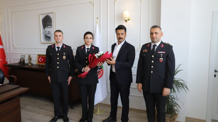 Jandarmanın kuruluş yıl dönümünü kutlayan Kaymakam Sert, “Milletimizin huzuru ve güvenliği için omuz omuza mücadele etmekten onur duyduğumuz kahraman ve fedakâr Jandarma teşkilatımızın kuruluşunun 185. kuruluş yıl dönümünü kutlar; şehitlerimize Allah’tan rahmet, gazilerimize sağlıklı, mutlu ve uzun ömürler dilerim” dedi ve kendisini ziyaret eden heyete görevlerinde başarılar diledi. Haber: Sabahattin Atasoy
