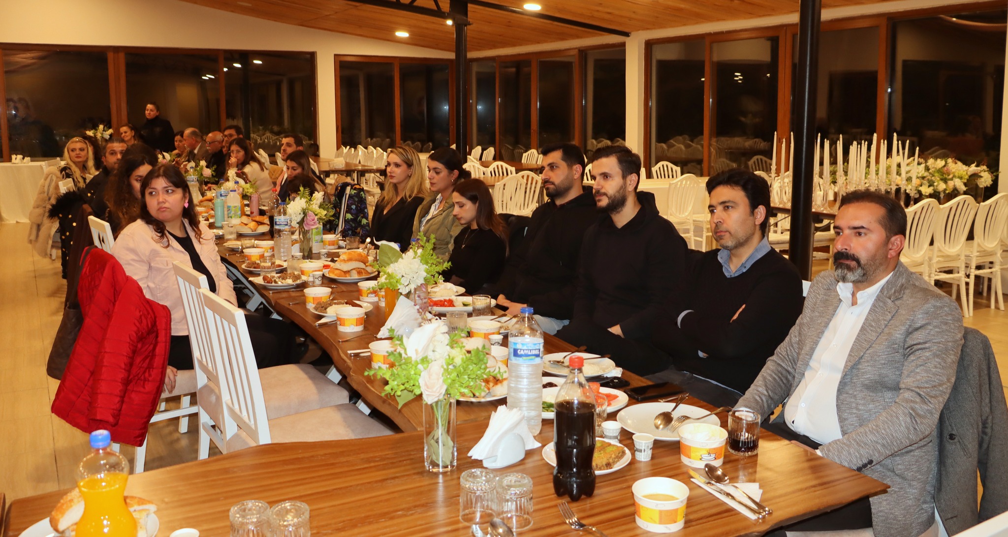 Hatay Medeniyetler Korosu’nun geleneksel Kadir Gecesi iftar programı, sürprizlerle duygusal anlara da sahne oldu. Doğum günü olan Şef Yılmaz Özfırat için hazırlanan pasta kesilirken Özfırat, tüm koro üyelerine teşekkür ederek “İnşallah hep birlikte daha nice güzel yıllara ulaşırız” temennisinde bulundu.