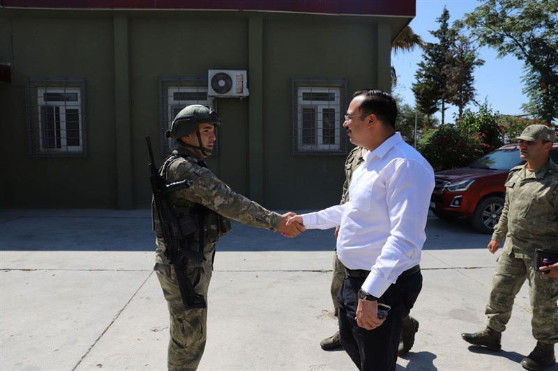 Ziyaret kapsamında Kılıçtutan Hudut Karakolu, Şanlı Hudut Karakolu, Karbeyaz Hudut Karakolu ve Şehit Üsteğmen Mehmet Alim Hudut Karakolu’nda incelemelerde bulunan Kaymakam Şahin, karakol komutanlarıyla bir araya gelerek sınır güvenliği konusunda yürütülen çalışmaları yerinde değerlendirdi.