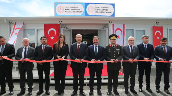 Tatar, Hatay’ın İskenderun ilçesindeki Kıbrıs Şampiyon Melekler Konteyner Kenti’nde aynı ismi taşıyan ilk ve ortaokulun açılışına katıldı.