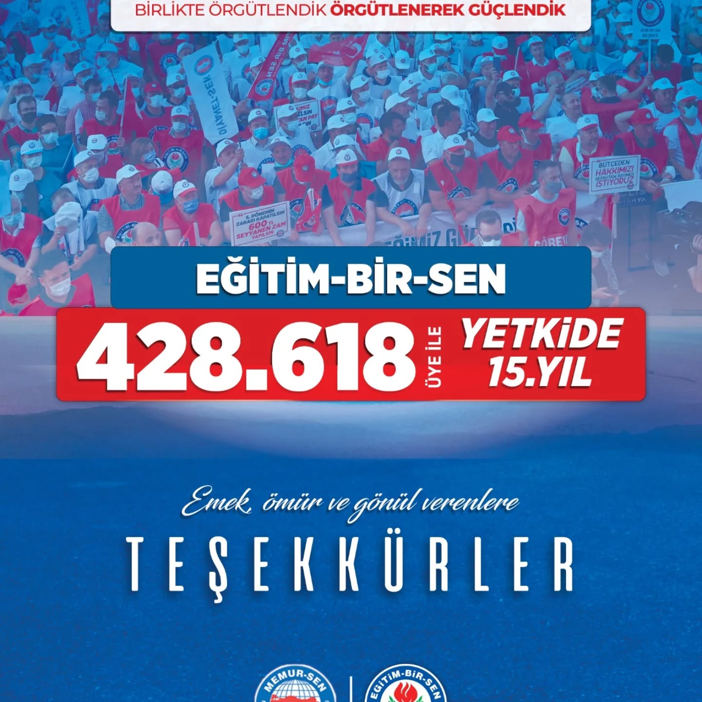 Başkan Bayrakdar, bu büyük başarının arkasında örgütlü bir yapının, fedakârca çalışan teşkilatların ve güçlü bir üye iradesinin bulunduğuna dikkat çekerek, “Mücadelemize omuz vererek gücümüze güç katan 428.618 Eğitim-Bir-Sen üyemizi, bu başarının gerçek mimarları olarak yürekten kutluyorum. Bugün üyelerimiz bizimle, biz de üyelerimizle omuz omuza daha güçlüyüz. Yarınlarda da hep birlikte Eğitim-Bir-Sen olarak çok daha güçlü olacağız” dedi.