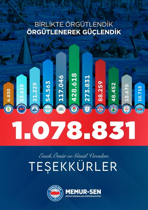 Hatay – Memur-Sen Hatay 1 Nolu Şube Başkanı İsmail Bayrakdar, Resmî Gazete’de yayımlanan 2024-2025 yılı sendikal istatistiklere ilişkin açıklamalarda bulunarak, Memur-Sen’in Türkiye’nin en büyük sivil toplum örgütü olma unvanını bir kez daha perçinlediğini belirtti. Bayrakdar, Memur-Sen’in 11 hizmet kolunda toplam 1 milyon 78 bin 831 üyeye ulaşarak, kamu görevlileri sendikacılığında zirvedeki yerini koruduğunu ifade etti.