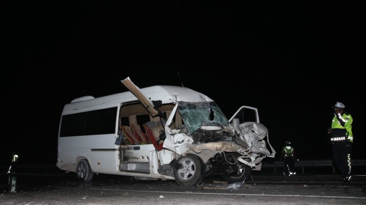 Minibüs ile traktörün çarpışması sonucu 14 kişi yaralandı