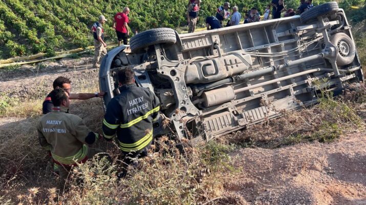 Hatay’ın merkez Antakya ilçesinde minibüsün tarlaya devrilmesi sonucu 8’i çocuk 13 kişi yaralandı. Sürücüsünün henüz ismi öğrenilemeyen bir özel rehabilitasyon merkezine ait 31 AOZ 762 plakalı servis minibüsü, Bozhöyük Mahallesi’nde yol kenarındaki tarlaya devrildi. İhbar üzerine kaza yerine 112 Acil Sağlık, itfaiye ve jandarma ekipleri sevk edildi. Yaralanan 8’i çocuk 13 kişi, itfaiyenin çalışmasıyla araçtan çıkarılıp ambulanslara taşındı. Çevredeki hastanelere kaldırılan yaralıların durumunun iyi olduğu öğrenildi. AA