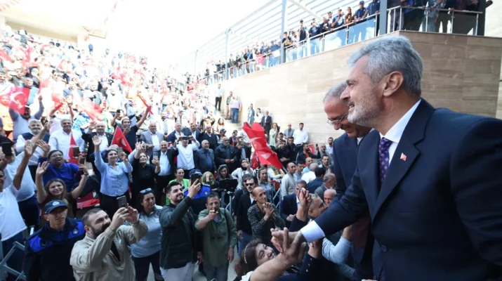 Hatay Büyükşehir Belediye Başkanı Mehmet Öntürk, mazbatasını aldıktan sonra Antakya EXPO alanında kendisini bekleyen coşkulu kalabalık ile kucaklaştı.