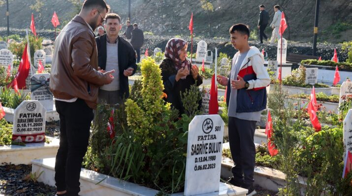 Hatay’ın Antakya ilçesinde 6 Şubat 2023’teki afette yakınlarını kaybedenler, Ramazan Bayramı’nın ilk gününde Narlıca Deprem Mezarlığı’nı ziyaret etti. Sabahın erken saatlerinde mezarlığa gidenler, yakınlarının kabirlerini suladı, çiçek bıraktı. Kur’an-ı Kerim okuyan ziyaretçiler, mezar başlarında dua etti.