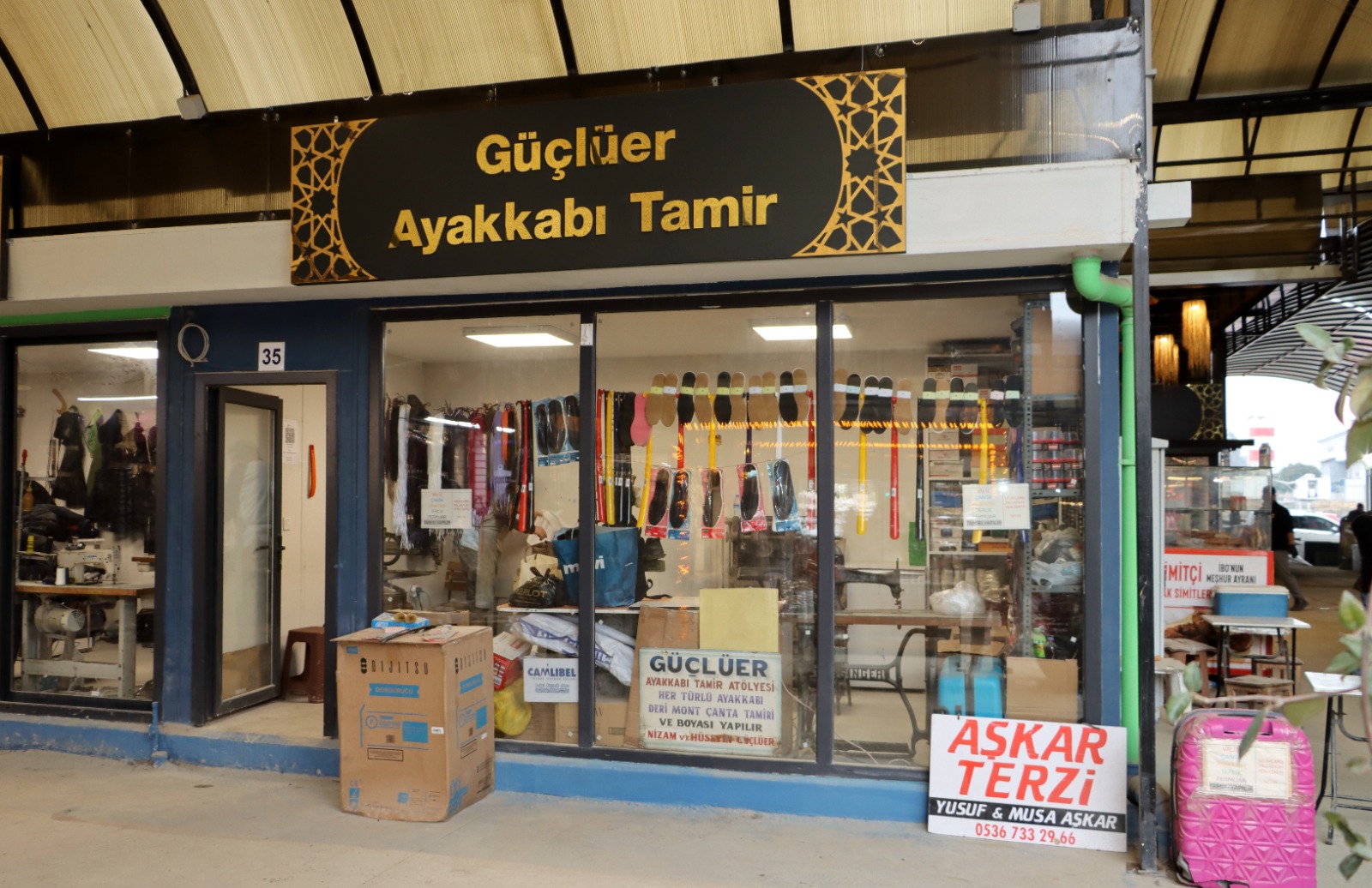 Ayakkabı tamiratının yanı sıra deri mont ve çanta tamiri, boyama işlemleri de yapan Güçlüer; dükkânında ayakkabı boyaları, cilalar, temizleme ve parlatma süngerleri, rengârenk ayakkabı bağcıkları ile ayakkabı çekeceği çeşitlerini de müşterilerinin hizmetine sunuyor.