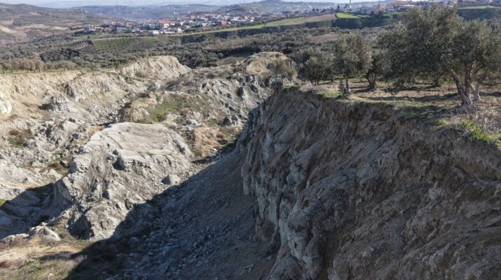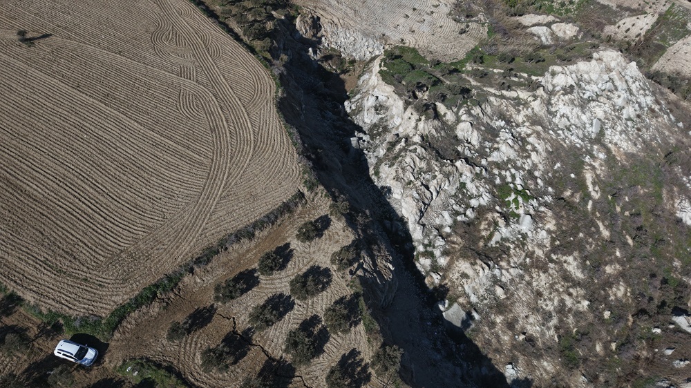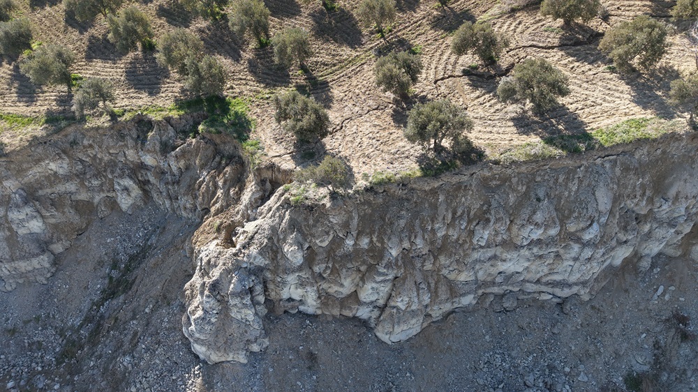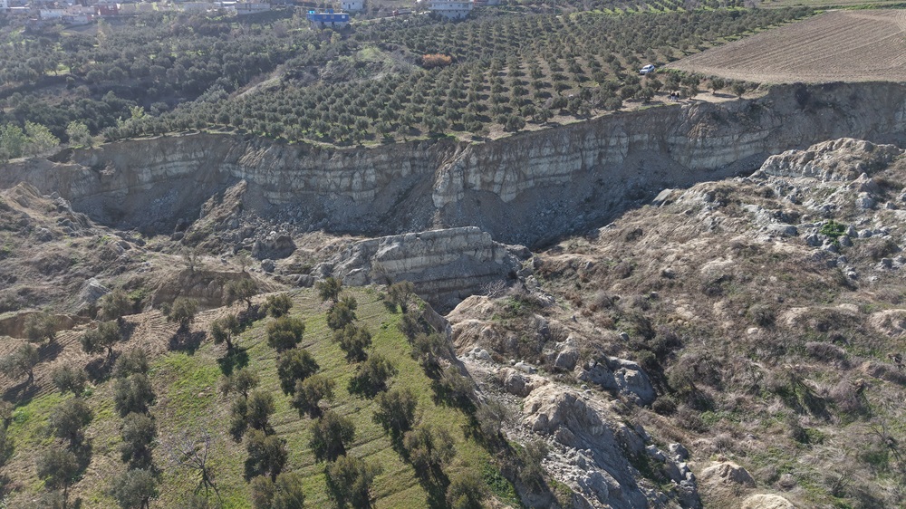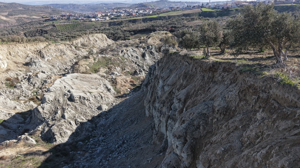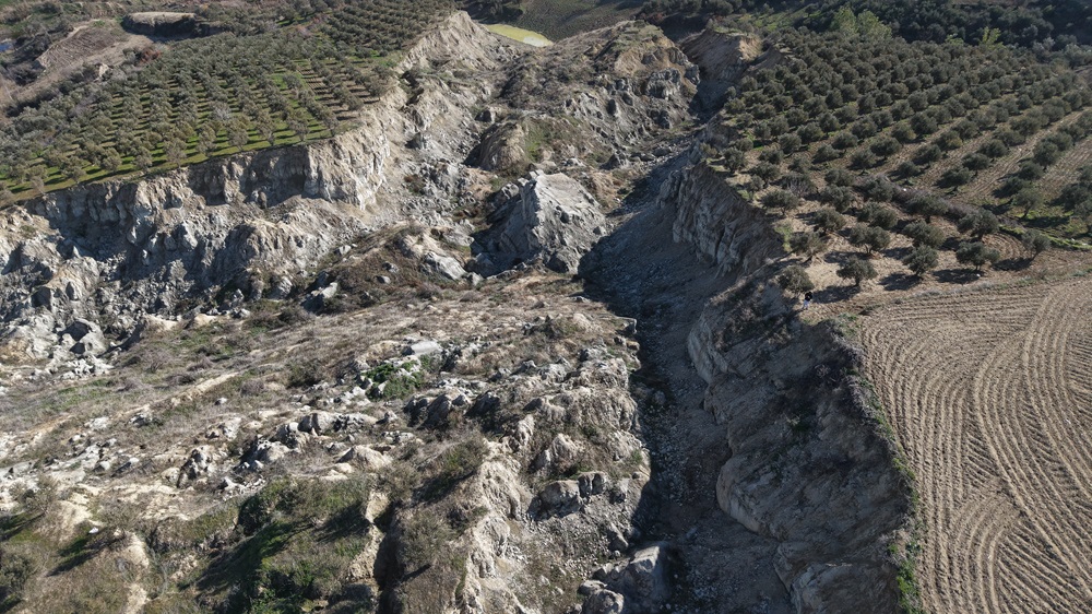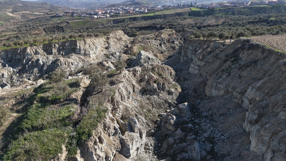 Genişliği 200, derinliği ise 50 metre olan fay yarığının çevresinde çok sayıda zeytin ağacı yer alıyor.
