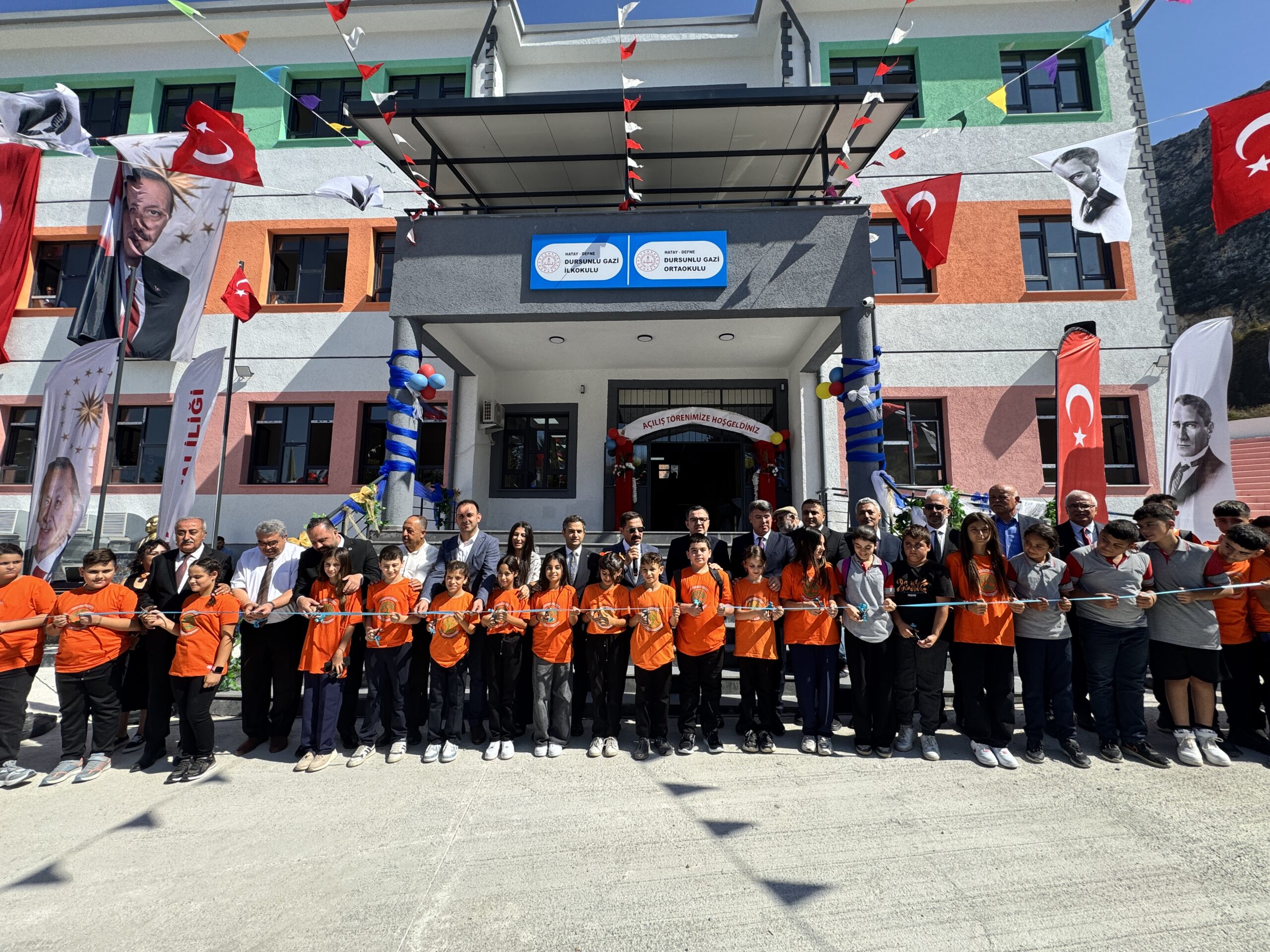 2025-2026 eğitim öğretim yılının başlamasıyla okullarda ilk ders zili çaldı. Hatay’da, depremde aldığı hasar sonrası yıkılan ve yerine yenisi yapılan 3 katlı 12 derslikli Dursunlu Gazi İlkokulu ve Ortaokulu’nun açılışı yapıldı. Vali Mustafa Masatlı ve beraberindekiler, okulun açılış kurdelesini keserek ilk ders zilini çaldı, sınıfları gezerek öğrencilere hediye verdi.